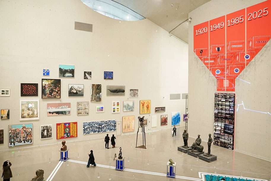 步入展厅,“继往开新”“数衍万象”“器以载道”“里仁为美”四大板块徐徐铺展。从“继往开新”所彰显的历史文脉与创作焕新,到“数衍万象”引领新兴艺术跨界拓维;从“器以载道”践行的艺术设计与产业转型深度融合,到“里仁为美”倡导的主动投身城市更新实践探索……众多佳作汇聚一堂,系统呈现了湖北美术学院在艺术创作、设计赋能、城市焕新和理论研究领域的学术追求与实践成果。