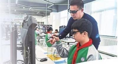 宁夏银川市兴庆区第二十五小学人工智能系列课程AR体验课授课中。学校供图